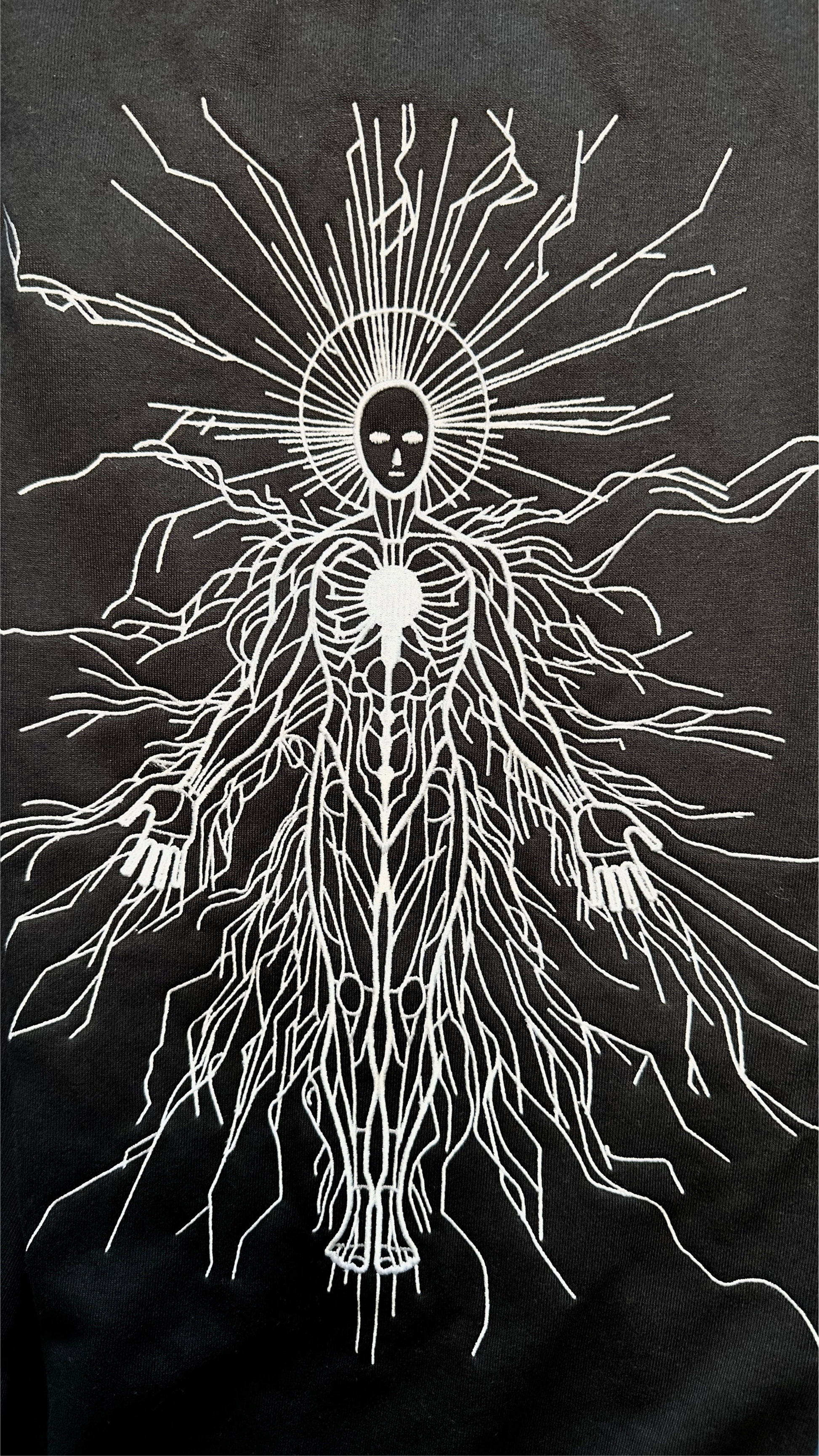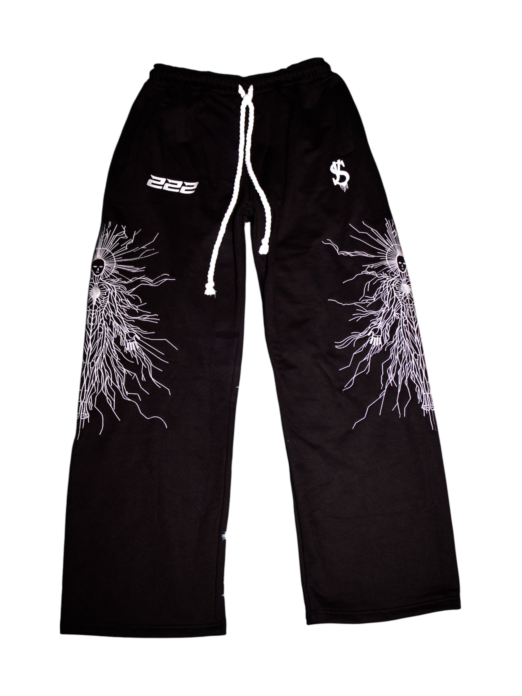 These premium heavyweight sweatpants are made from a blend of cotton and French terry. The drawstring is rope, the logos are all embroidered, and the logos on the side were designed by Ai. Both side pockets are deep with zippers, there is also a back pocket for your wallet.